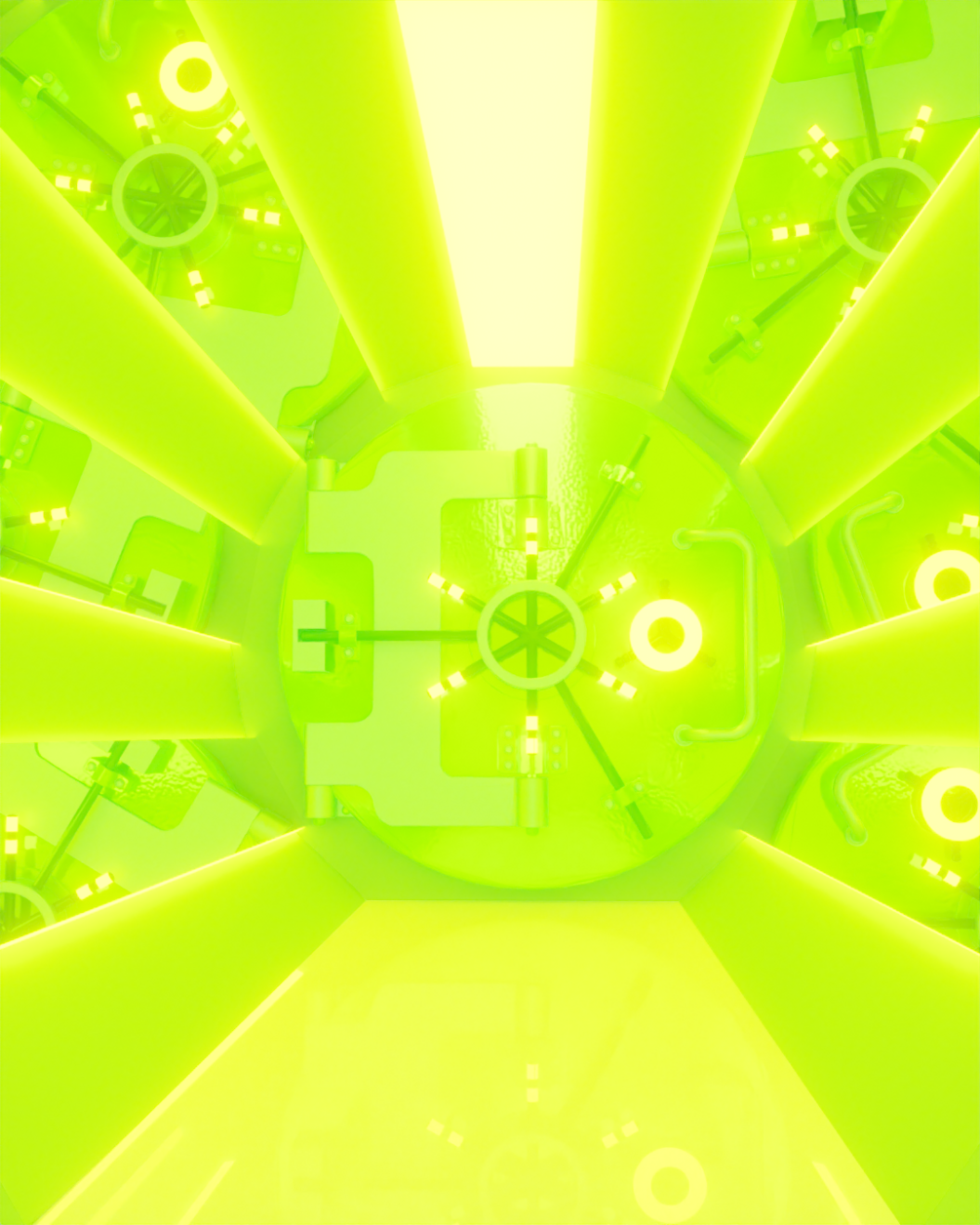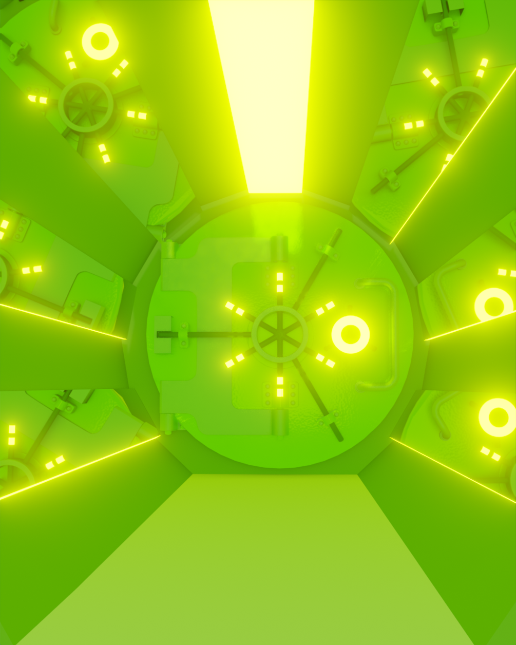 A striking color and a pair of lights make the perfect combination for this scene, which is kept behind that door?