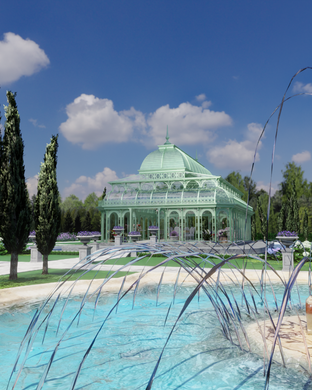 Some plants outside are hidden but you can see them in the final render.